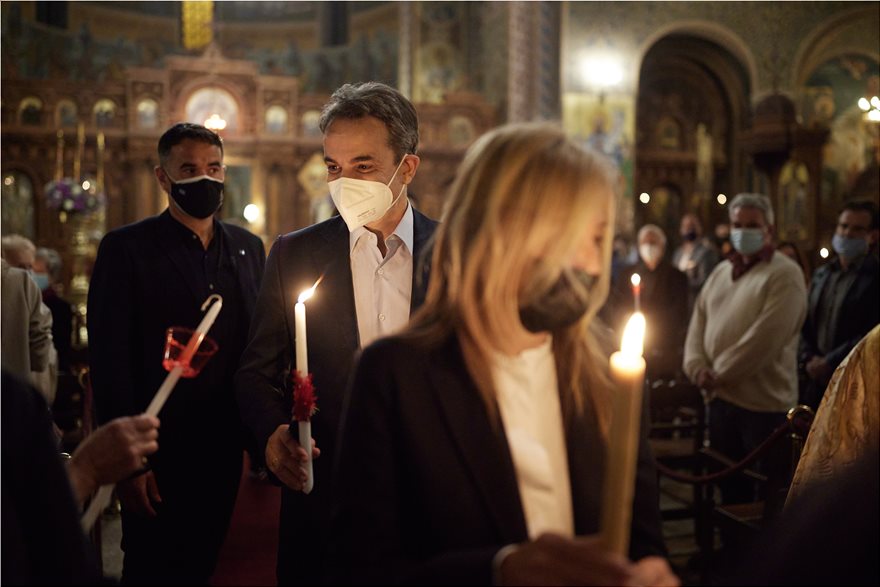 Ο Πρωθυπουργός, κ. Μητσοτάκης, παρέστη στην λειτουργία της Αναστάσεως, στον Ιερό Ναό Αγίου Διονυσίου Αρεοπαγίτου Αθηνών. Μαζί του ήταν η σύζυγός του, Μαρέβα Γκραμπόφσκι – Μητσοτάκη και τα παιδιά του Σοφία, Κωνσταντίνος και Δάφνη.