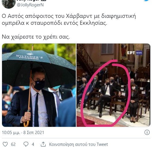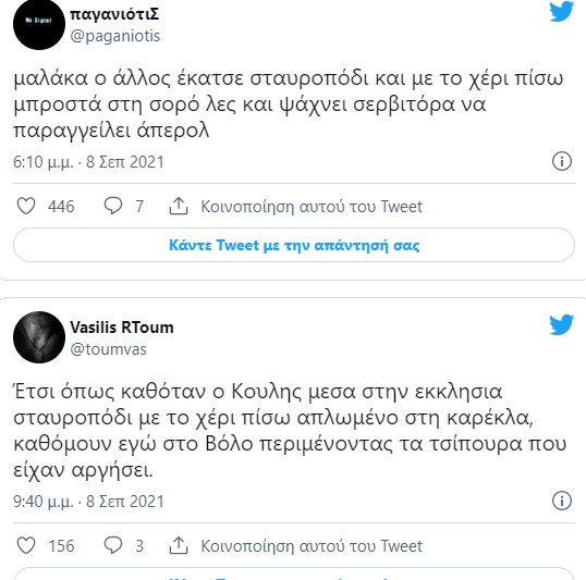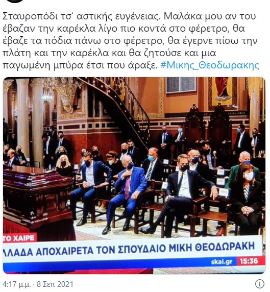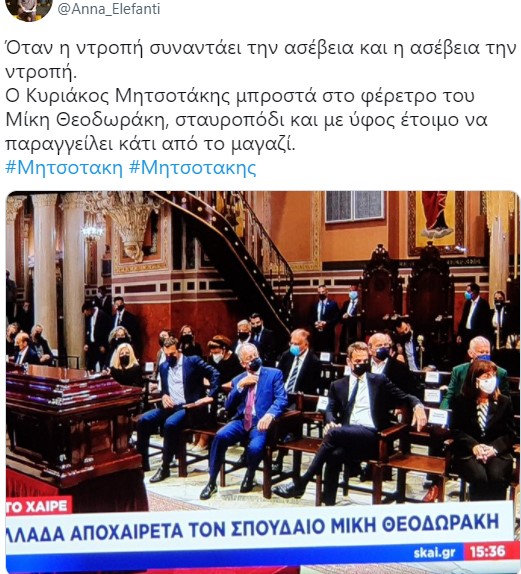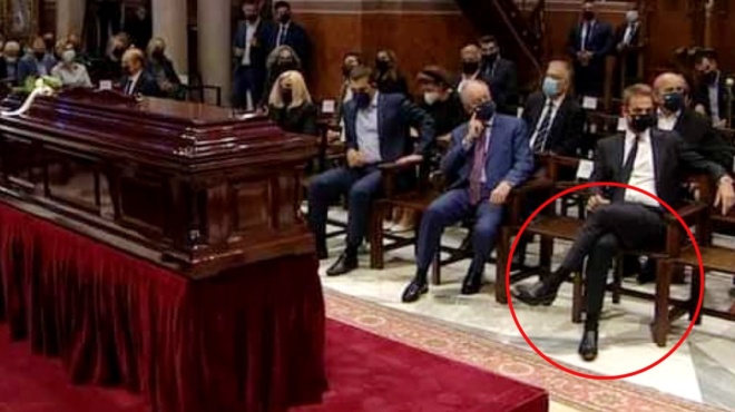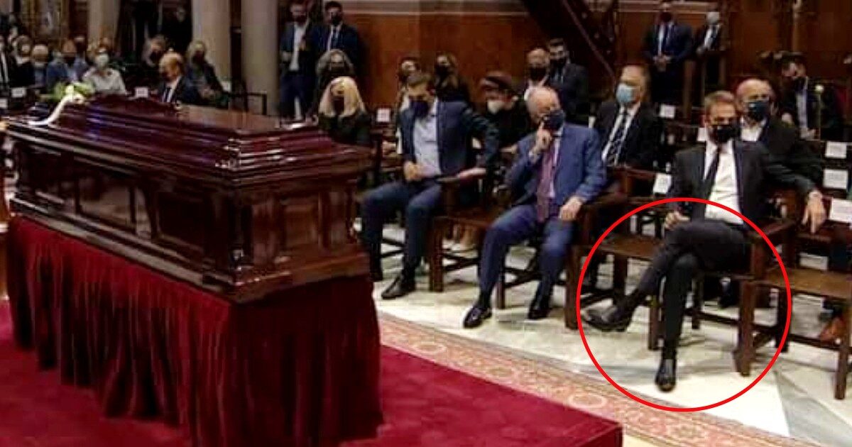 Σέβεται πολύ τον νεκρό όπως βλέπουμε όλοι στην φωτο παρακάτω: Σταυροπόδι μπροστά στον νεκρό μέσα στην εκκλησία. Ούτε τα βασικά», αναφέρει χρήστης στο twitter.