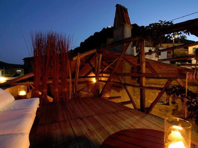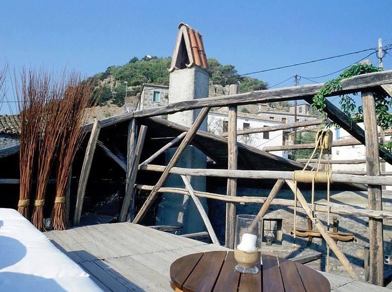 Η κατεστραμμένη στέγη και η έντονη κλίση του εδάφους επέτρεψε στον Λημνιό αρχιτέκτονα Χάρρυ Μπουγαδέλλη, να αναπτύξει πολλούς και διαφορετικούς χώρους και να κινηθεί ανάμεσα στο ανοικτό και το κλειστό και να παίξει με το φως και το σκοτάδι, δημιουργώντας μία εξοχική κατοικία μοναδικά αυθεντική.