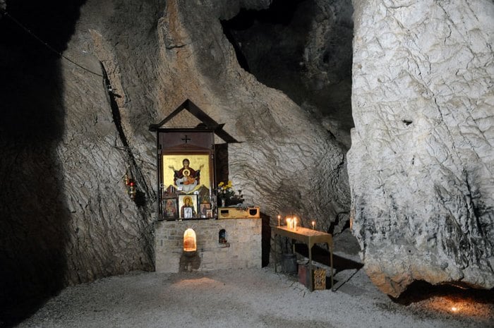 Η σπηλιά όπου βρίσκεται η εκκλησία χρησιμοποιήθηκε ως καταφύγιο και κρυφό σχολειό κατά την περίοδο της Τουρκοκρατίας. Παρόλα αυτά, οι εργασίες στον περιβάλλοντα χώρο του ναού συνεχίζονται ακόμα και σήμερα. Επιπλέον, στο εσωτερικό της σπηλιάς, σε βάθος 110 μέτρων, έχει κατασκευαστεί ένα προσκύνημα με την ονομασία “Γολγοθάς”, ενώ υπάρχει επίσης ένας βράχος που κρέμεται από την οροφή και φτάνει λίγο πάνω από το έδαφος. Ανασκαφές που πραγματοποιήθηκαν το 1972 στην περιοχή αποκάλυψαν ευρήματα από την παλαιολιθική εποχή.