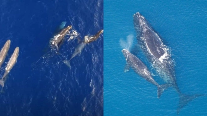 Πιο συγκεκριμένα, μοναδικές εικόνες από τη στιγμή από φάλαινες που θηλάζουν τα μικρά τους, καταγράφηκαν στο Ιόνιο Πέλαγος και την Ελληνική Τάφρο (από την Κεφαλλονιά μέχρι την νότια Κρήτη και την Ρόδο) οι επιστήμονες του Ινστιτούτου Κητολογικών Ερευνών «Πέλαγος».