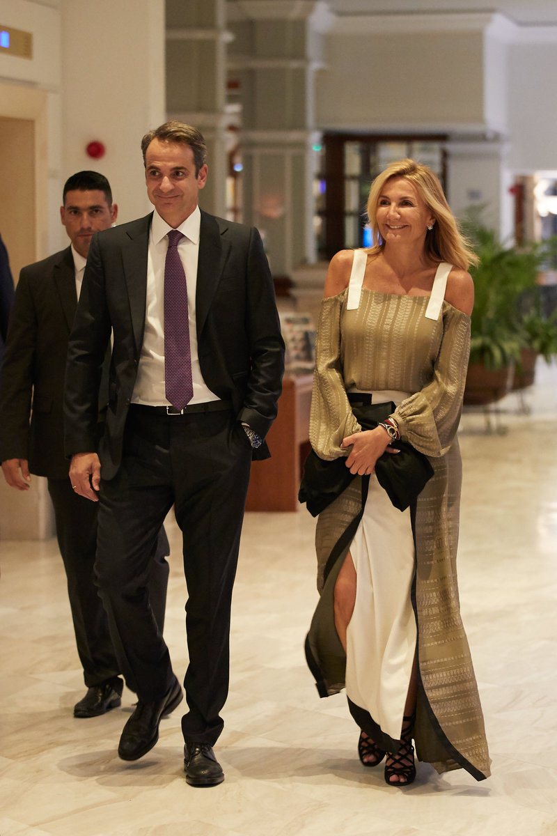 Η εξωτερική εμφάνιση της Μαρέβα Μητσοτάκη έστρεψε όλα τα βλέμματα επάνω της. Η «Πρώτη Κυρία» της χώρας ήταν εντυπωσιακή. Και πώς να μην είναι άλλωστε, αφού φορούσε μια δημιουργία του Zeus+Dione. Αυτή η δημιουργία είχε να κάνει με μια ανοιχτή φούστα και μια τρικολόρε μπλούζα, με γεωμετρικές γραμμές. Ωστόσο, τα πέδιλά της ήταν αυτά που έκλεψαν την παράσταση. Από εκεί και πέρα και η τσάντα, που κρατούσε η ίδια, συγκέντρωσε θετικά σχόλια.