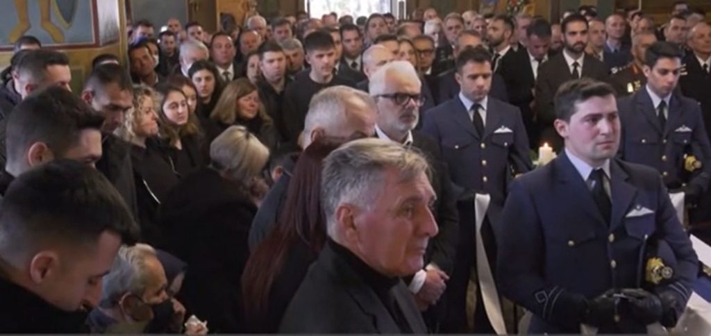 Την ώρα που ξεκινούσαν οι επικήδειοι, οι φίλοι και συνάδελφοι του Μάριου στην Πολεμική Αεροπορία, αυτοί που κράτησαν το φέρετρό του, εκείνοι που στάθηκαν στις τέσσερις γωνίες του μέσα στο ναό κατά τη διάρκεια της τελετής, έσπασαν και δάκρυσαν,