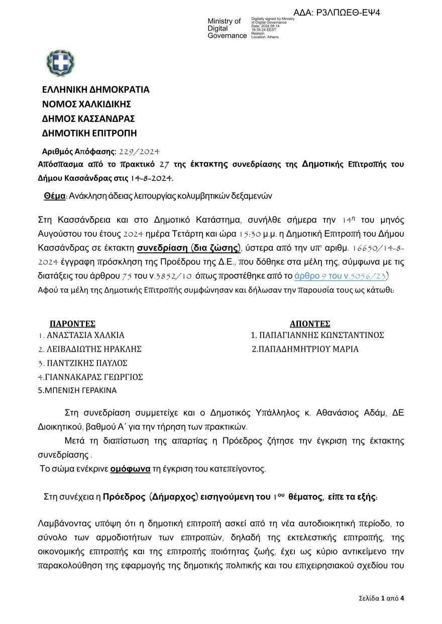 Υπενθυμίζεται ότι ο Δήμος Κασσάνδρας είχε εκδώσει άδειες λειτουργίας για τις δύο πισίνες της συγκεκριμένης κατασκήνωσης τον Αύγουστο του 2022. Στη σημερινή (Τετάρτη 14/08) έκτακτη συνεδρίαση, αποφασίστηκε η ανάκληση των αδειών λειτουργίας, καθώς διαπιστώθηκε ότι έχουν αλλάξει τα δεδομένα βάσει των οποίων είχαν εκδοθεί οι άδειες.