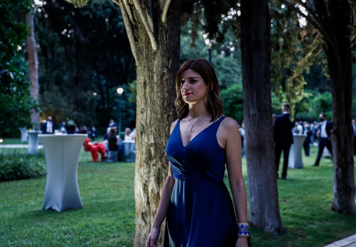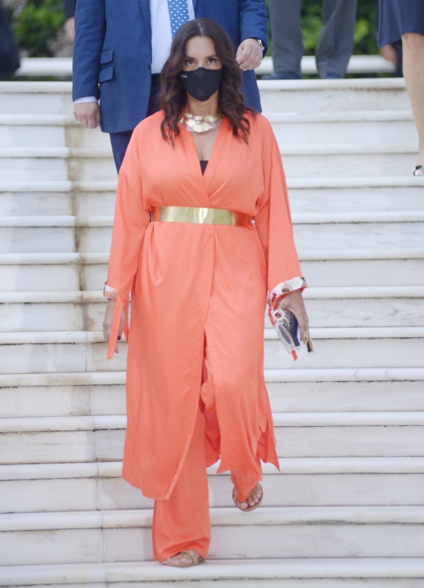 Η Πρόεδρος της Δημοκρατίας, Κατερίνα Σακελλαροπούλου, σε ρόλο οικοδέσποινας, υποδέχθηκε στον εντυπωσιακό κήπο του Προεδρικού Μεγάρου τους επίσημους προσκεκλημένους της λαμπερής εκδήλωσης.