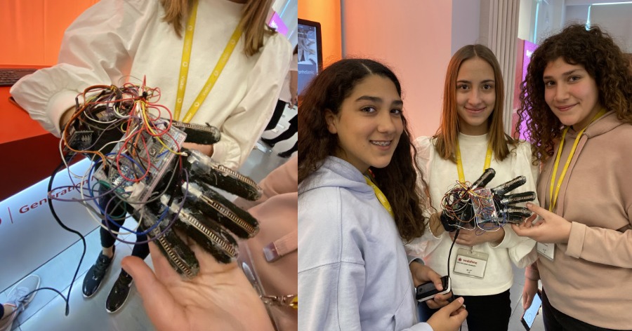 Τα τρία κορίτσια έγιναν μία ομάδα και αποφάσισαν να δηλώσουν συμμετοχή στον πανελλήνιο διαγωνισμό Generation Next. «Αρχίσαμε τα μαθήματα STEM και ο δάσκαλος μας ζήτησε να βρούμε κάποιο πρόβλημα που θα θέλαμε να λύσουμε. Θυμηθήκαμε αυτό το κορίτσι και σκεφτήκαμε να αναπτύξουμε το γάντι», λέει η Αλεξία περιγράφοντας την εφεύρεση των κοριτσιών, που θα είχα, λίγο αργότερα, την ευκαιρία να δω από κοντά στην πράξη.