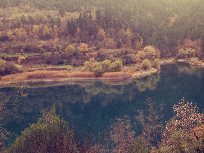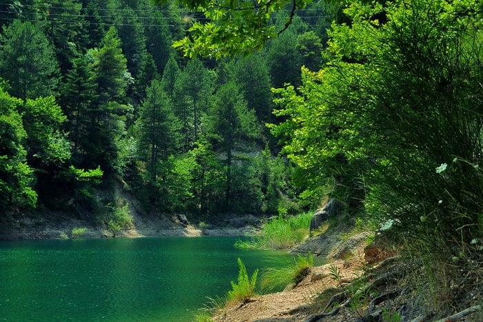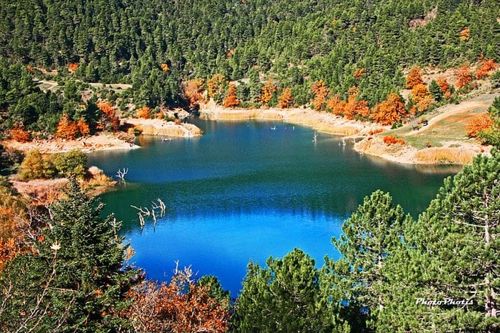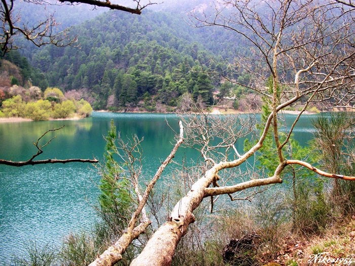 Πρόκειται για μια καταγάλανη λίμνη, με γύρω γύρω δασωμένα βουνά.