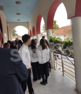 Φορώντας λευκά πανωφόρια οι συμμαθητές της αποχαιρέτησαν τη 15χρονη μαθήτρια.