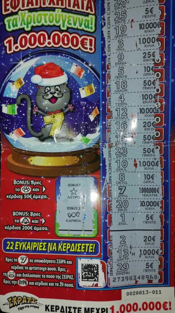 Τυχερός παίκτης του ΣΚΡΑΤΣ βρήκε την «Εφτάτυχη Γάτα τα Χριστούγεννα» στους Γαργαλιάνους Μεσσηνίας