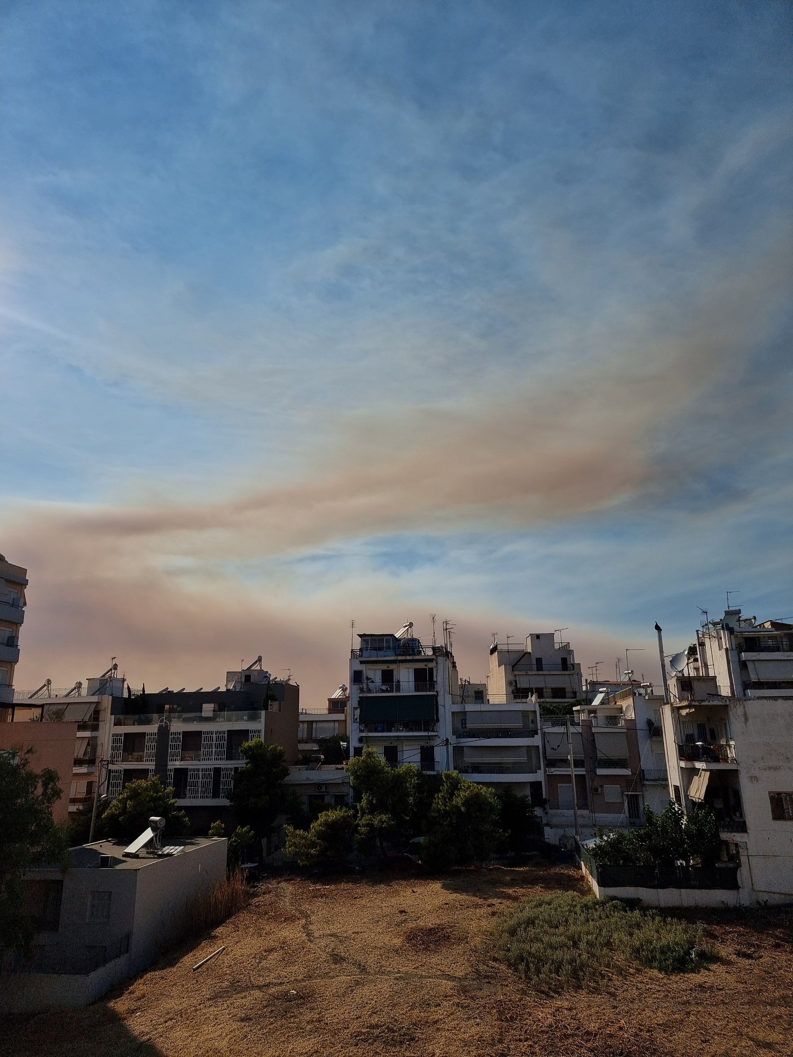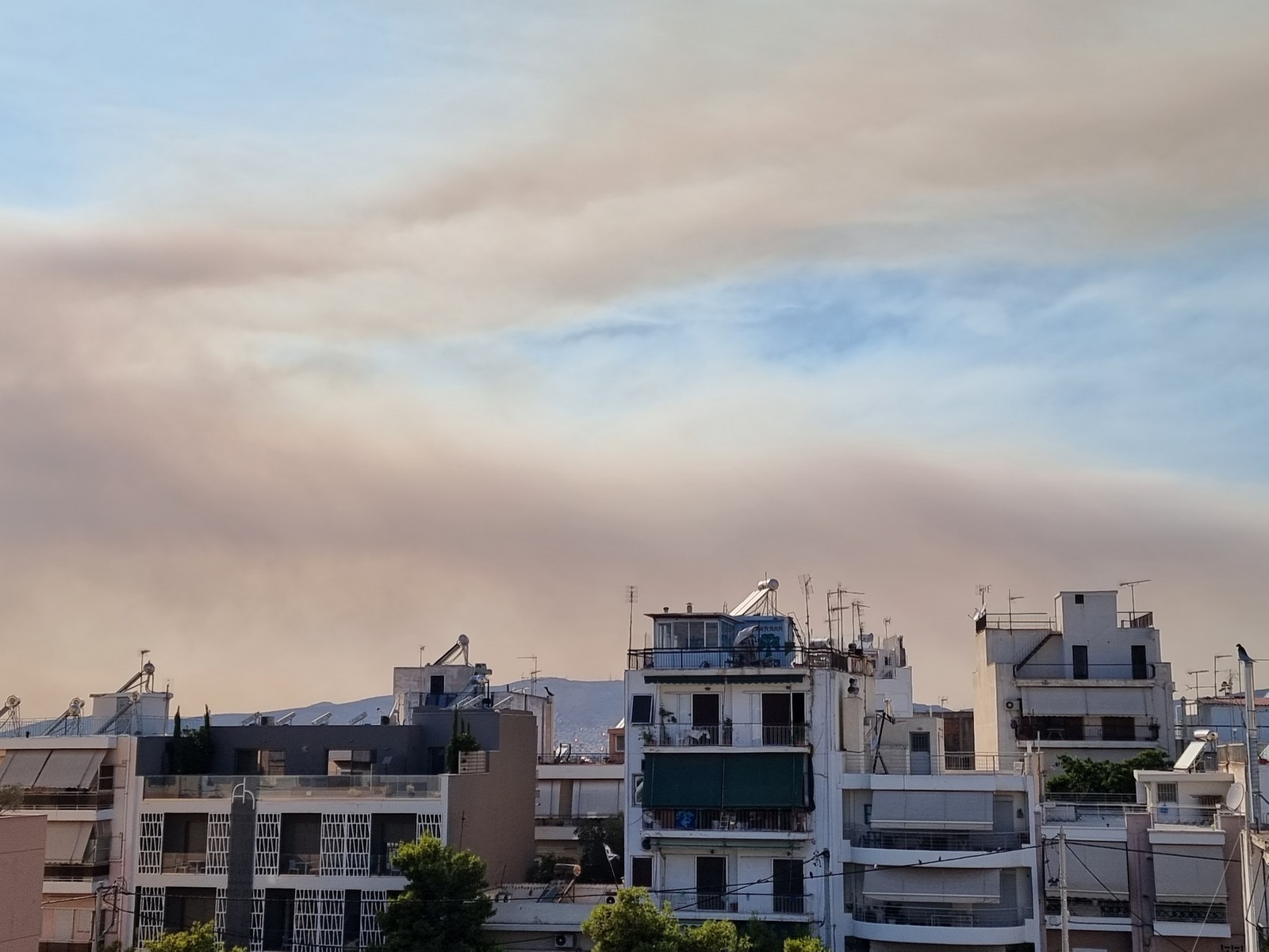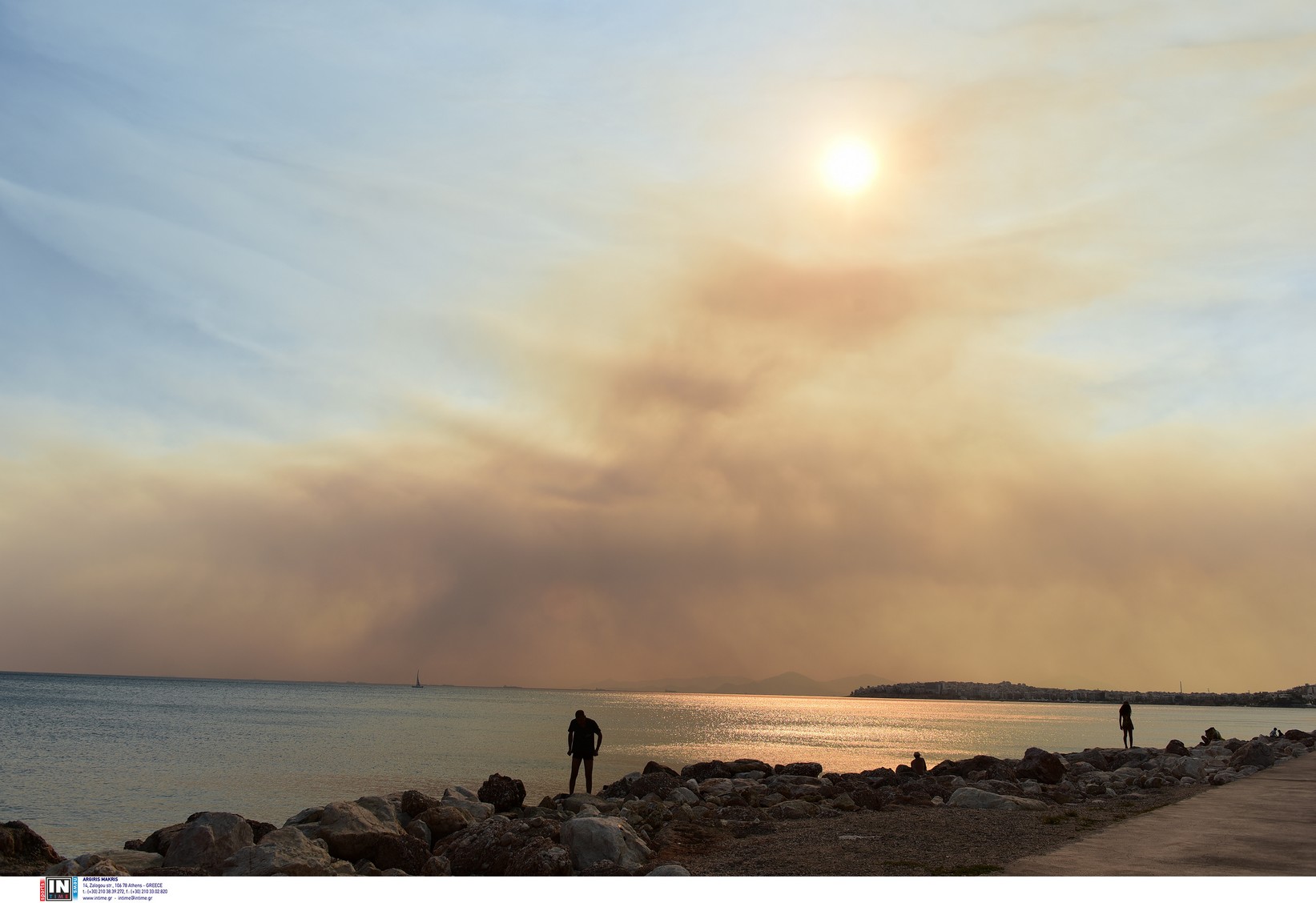 Μαύρος ο ουρανός της Αττικής από τη φωτιά στην Εύβοια