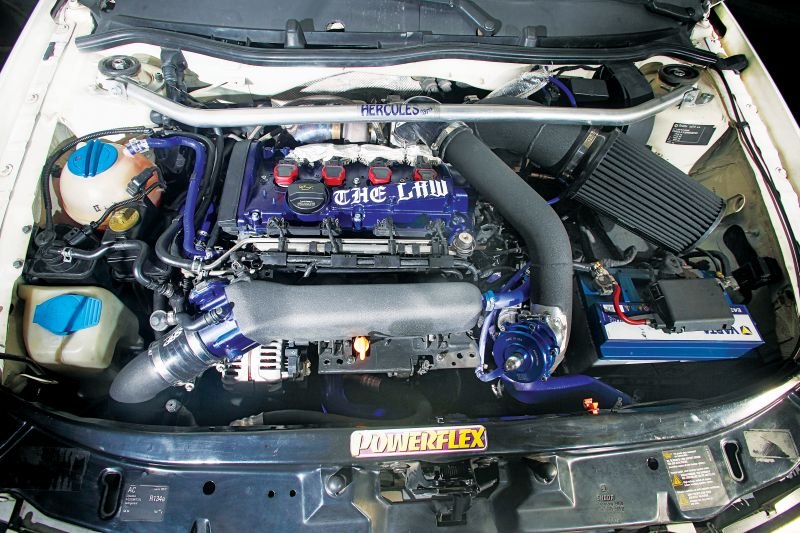 Το περιπολικό ήταν πεντακάθαρο, τακτοποιημένο, με tactical προσαρμοσμένες θήκες, ένα μεγάλο σακβουαγιάζ πρώτων βοηθειών στο πορτμπαγκάζ, πυροσβεστήρα και άλλα σύνεργα, που μαρτυρούσαν τον επαγγελματισμό του. Ανοίγοντας το καπό εντυπωσιάζει ο σφυρήλατος κινητήρας, που αντέχει το «ζόρι», δουλεύοντας με τρίτης γενιάς τουρμπίνα, η οποία έχει ικανότητα παροχής 550 ίππων.
