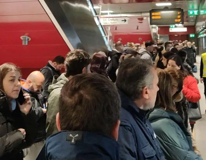 Συμφόρηση επικρατεί και στον Σταθμό του μετρό “Βενιζέλου”.