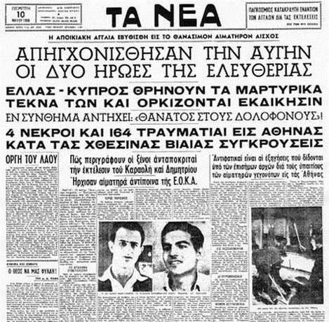 Στην Ελλάδα οργανώθηκαν πορείες διαμαρτυρίας κατά της απόφασης του δικαστηρίου, στις οποίες πέθαναν τέσσερις άνθρωποι. Παρά τη διεθνή κατακραυγή στις 10 Μαΐου 1956 οι δύο νέοι οδηγήθηκαν στην κρεμάλα. Οι Βρετανοί ήθελαν να φοβίσουν τους αγωνιστές της ΕΟΚΑ προκειμένου να σταματήσουν οι επαναστατικές ενέργειες, ωστόσο η εκτέλεση των δύο νεαρών πυροδότησε ένα κύμα αντιδράσεων και η απάντηση της ΕΟΚΑ στους Βρετανούς αποικιοκράτες ήταν σφοδρή…