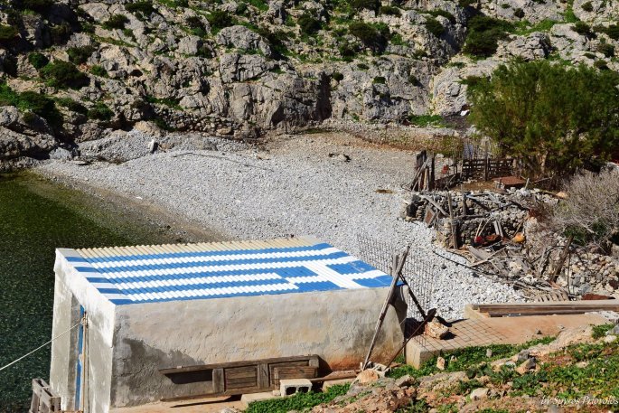 Τα χρώματα της γαλανόλευκης στην οροφή του σπιτιού της στην Κίναρο
