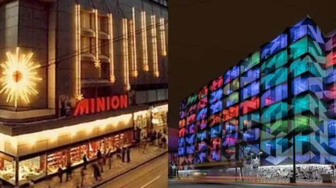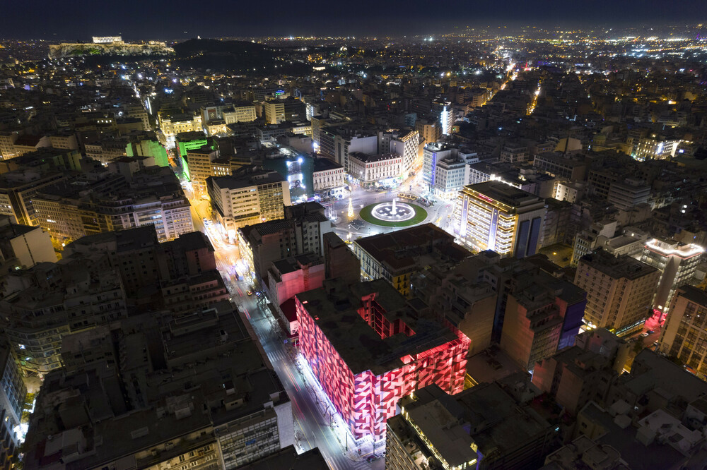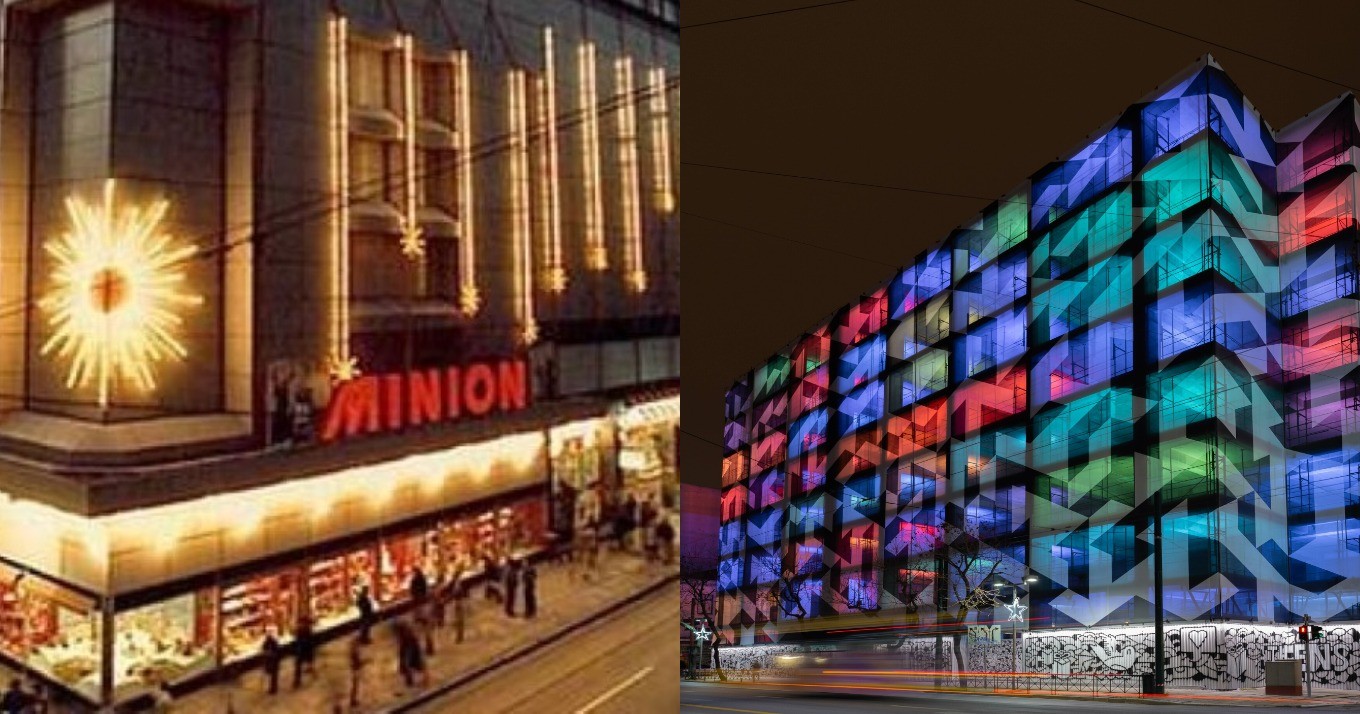 Δύο ημέρες πριν από τα Χριστούγεννα, το κτήριο που στέγαζε το ιστορικό πολυκατάστημα Μινιόν, στολίστηκε με φώτα δημιουργώντας γιορτινή ατμόσφαιρα σε μια ιδιαίτερα πολυσύχναστη περιοχή της Αθήνας.