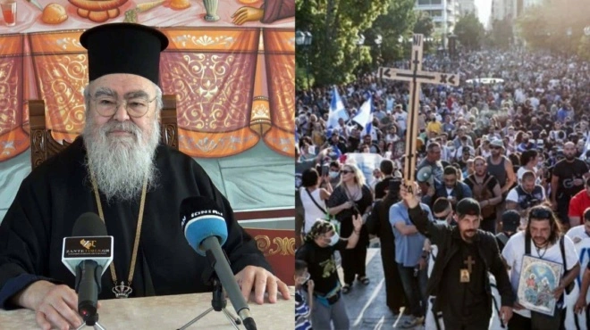 «Είμαι 45 χρόνια δεσπότης, 60 χρόνια κληρικός, 4 χρόνια κλητήρας στα γραφεία της Μητροπόλεως. Φώναξα έναν διάκο μαζί με τον διάδοχό μου, τον ρώτησα και μου είπε ότι δεν έκανε εμβόλιο. Του είπα, μέχρι να σκεφτείς να κάνεις εμβόλιο, να πας στο σπίτι σου, δεν έχεις δικαίωμα να έρχεσαι με τον κόσμο. Εάν υποχρεωθούν οι παππάδες να εμβολιαστούν θα είναι παράδειγμα για τους υπόλοιπους όσοι δεν εμβολιάζονται. Οι πιστοί επηρεάζονται από κάποιους παππάδες ή κάποιους παλαβούς. Θα έπρεπε οι μητροπολίτες να τους βάζουν σε αργία. Πρέπει να είναι υποχρεωτικός ο εμβολιασμός για κάθε ένα που δεν είναι στο σπίτι του και για κάθε εργαζόμενο που είναι στο δημόσιο».