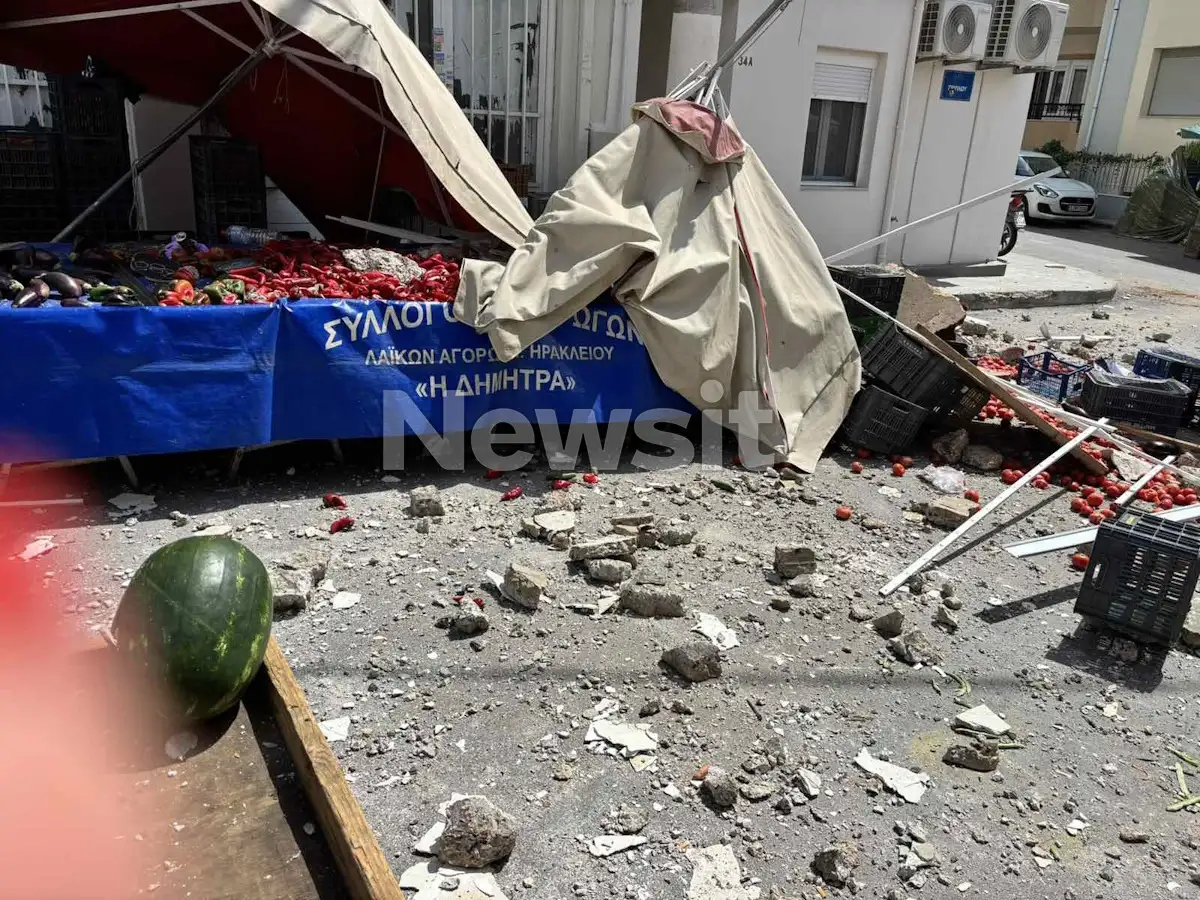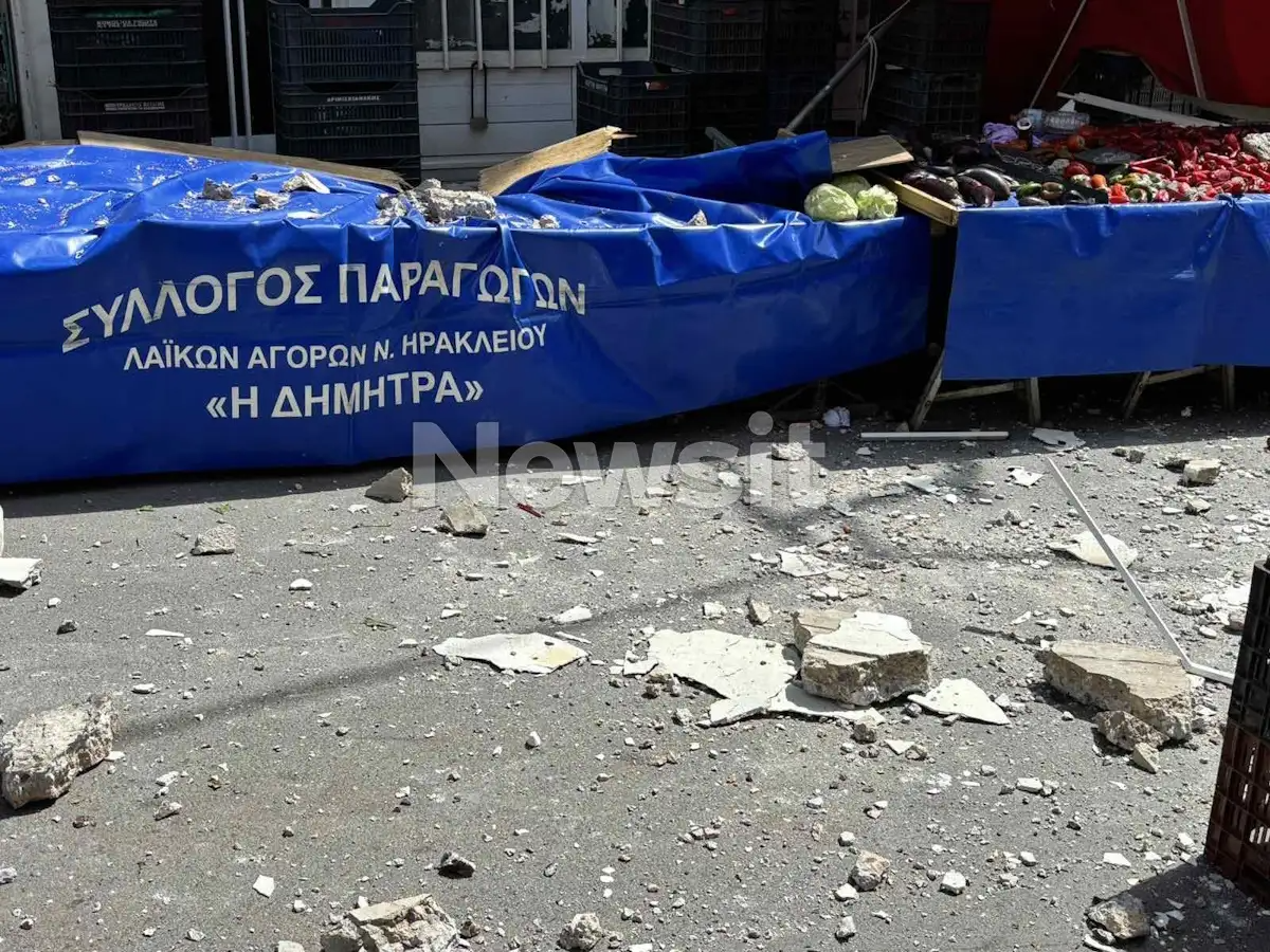 Πανικός επικράτησε το μεσημέρι της Δευτέρας (05.05.2025) στην λαϊκή αγορά στο Ηράκλειο, όταν τμήμα μπαλκονιού κατέρρευσε και έπεσε πάνω σε πάγκο.