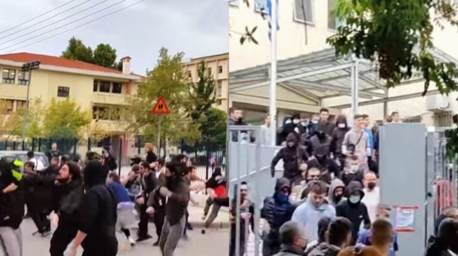Άγρια επίθεση εξαπέλυσε ομάδα κουκουλοφόρων που βγήκε μέσα από υπό κατάληψη σχολείο στη Σταυρούπολη Θεσσαλονίκης.