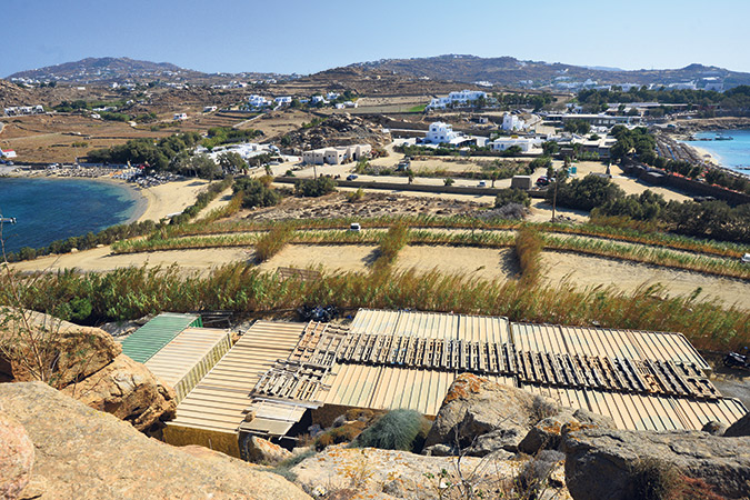 Στο κέντρο του Αιγαίου, 150 χλμ. ανατολικά της Αθήνας, σε έκταση 90 τετραγωνικών χιλιομέτρων, στο διασημότερο νησί των Κυκλάδων, τη Μύκονο, με τους φρενήρεις ρυθμούς ανάπτυξης, δημιουργήθηκαν οι πρώτες σύγχρονες ελληνικές φαβέλες. Πάνω σε λόφους, καλυμμένες από καλαμιές για να μη γίνονται αντιληπτές από τους τουρίστες και τις Αρχές.