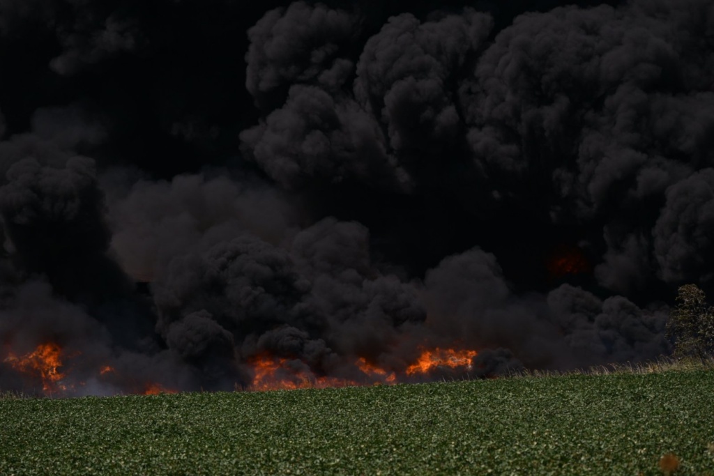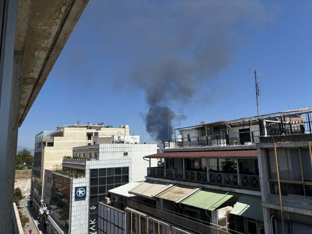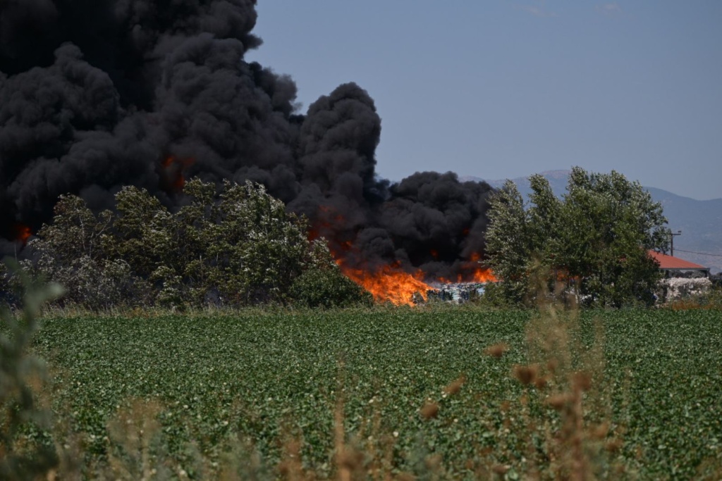 Πυκνοί μαύροι καπνοί έχουν σκεπάσει όλη την περιοχή και φαίνονται από χιλιόμετρα μακριά και από κάθε γωνιά της Λάρισας.
