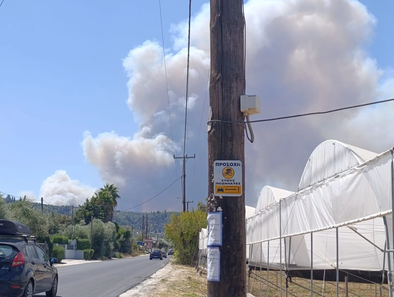 Η πυρκαγιά μαίνεται κοντά σε κατοικημένες περιοχές και ενισχύεται από τους ισχυρούς ανέμους. Επιχειρούν στο μέτωπο 50 πυροσβέστες με 18 οχήματα, δύο ομάδες πεζοπόρων, καθώς και 8 αεροσκάφη και 2 ελικόπτερα που πραγματοποιούν συνεχείς ρίψεις νερού.