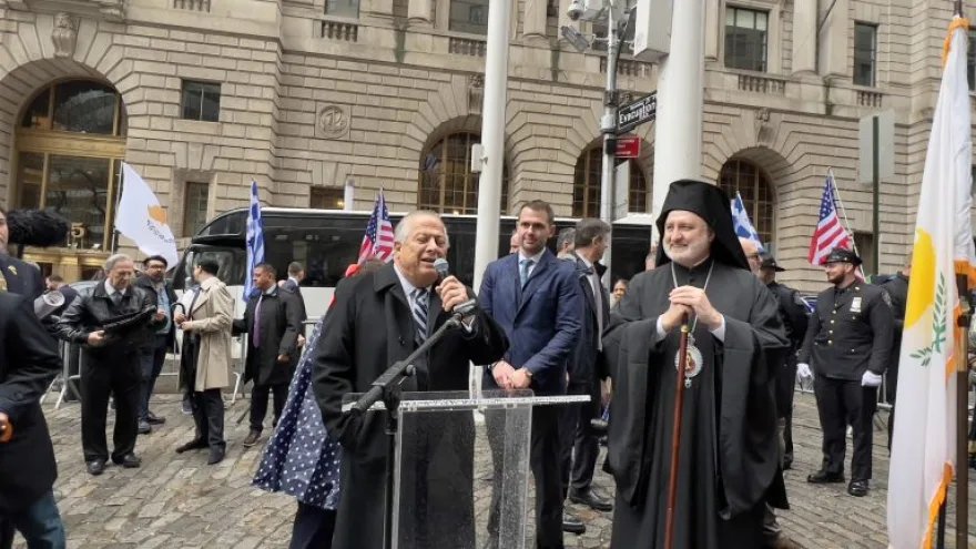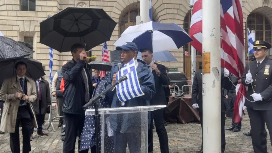 Τελικά, ο καιρός βελτιώθηκε και ο Δήμαρχος της Νέας Υόρκης, Έρικ Άνταμς, έφτασε στο σημείο για την εκδήλωση του Μπόουλινγκ Γκριν. Κρατώντας μια ελληνική σημαία, ο κ. Άνταμς αναφέρθηκε με άκρως κολακευτικά λόγια για την Ελλάδα και την ελληνοαμερικανική κοινότητα, εκφράζοντας την αγάπη του για τους Έλληνες της Νέας Υόρκης.
