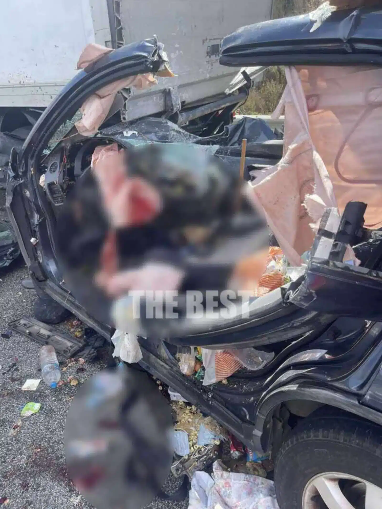 Το αυτοκίνητο έχασε τον έλεγχο και μετά την παράσυρση της οικογένειας, συνέχισε την ανεξέλεγκτη πορεία του μέχρι που ακινητοποιήθηκε σε ελιές.