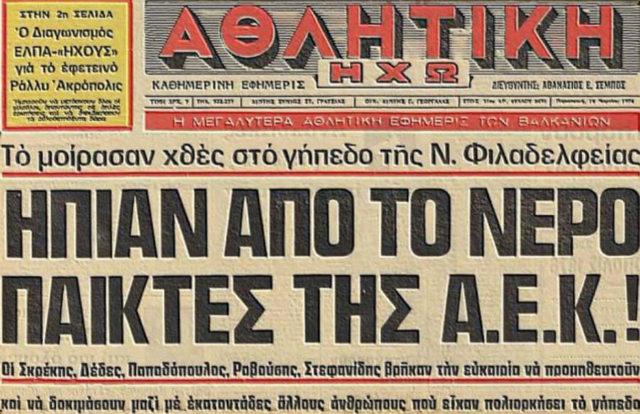 Ανάμεσα στον απλό κόσμο που στήθηκε στην ουρά για το νερό, σύμφωνα με δημοσιεύματα της εποχής, ήταν και πέντε ποδοσφαιριστές της ΑΕΚ (Σκρέκης, Παπαδόπουλος, Ραβούσης, Δέδες, Στεφανίδης) οι οποίοι περίμεναν καρτερικά να έρθει η σειρά τους. Μέχρι νωρίς το μεσημέρι ο Καματερός είχε ξεπουλήσει.