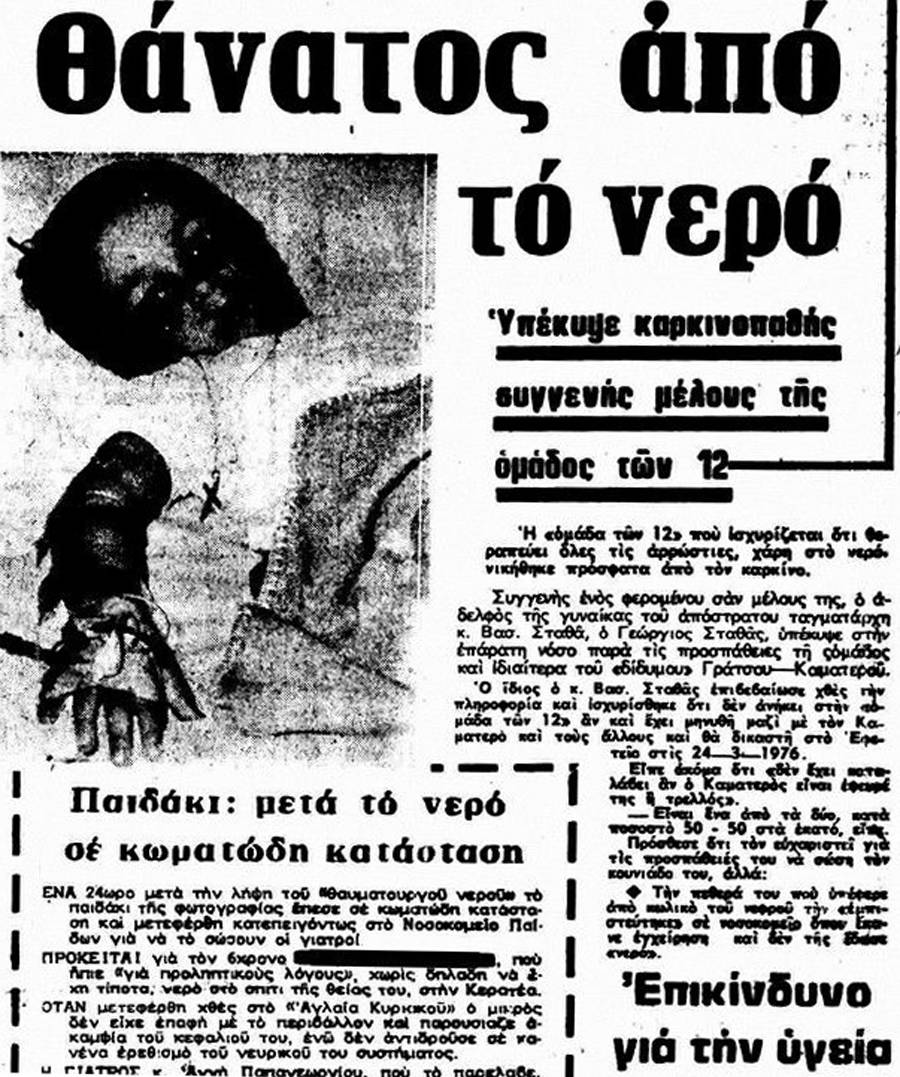 Αποτέλεσμα; Οι γονείς 18 παιδιών που νοσηλεύονταν με λευχαιμία και κακοήθεις όγκους στο νοσοκομείο «Αγλαΐα Κυριακού», σταμάτησαν την κλασική θεραπεία και έδιναν στα παιδιά το νερό του Καματερού. Ως αποτέλεσμα, ένα από τα παιδιά πέθανε και η κατάσταση των υπολοίπων παρουσίασε επιδείνωση…