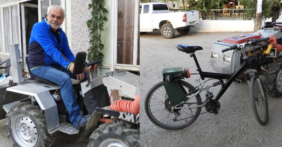 Δεν έμεινε όμως εκεί: “Έφτιαξα ένα δίκυκλο παίρνοντας από μία παλιά μηχανή το ψαλίδι και τους τροχούς – τα υπόλοιπα, ο σκελετός και η κατασκευή, είναι όλα δικά μου”. Το παλμαρέ του περιλαμβάνει κι ένα ηλεκτρικό μηχανάκι με … μίζα! “Το μέλλον είναι ο ήλιος και η μπαταρία. Ο ήλιος μάς δίνει άφθονη ενέργεια και τζάμπα” είναι η θεωρία (του) την οποία μετουσιώνει σε πράξεις!
