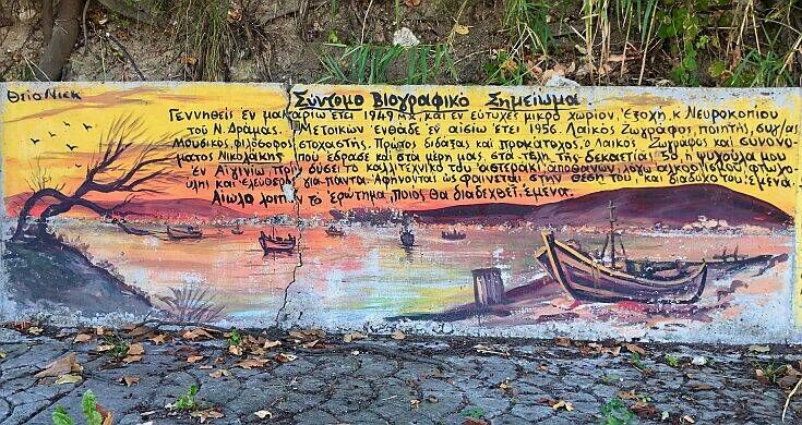 Βλέποντας ότι οι αντιδράσεις των συγχωριανών του ήταν ελάχιστες σε σχέση με την αποδοχή που είχαν τα έργα του, ο «θείο Nick», όπως είναι το καλλιτεχνικό του ψευδώνυμο, συνέχισε να δημιουργεί, προχωρώντας και στο διπλανό χωριό, τη Μεθώνη. Εκεί βρίσκεται και το μεγαλύτερο σε μήκος έργο του, ένα τοιχάκι διακοσίων μέτρων, κατά μήκος της παραλίας. «Έβαλα πείσμα να το ζωγραφίσω όλο και πήγαινα κάθε μέρα μέχρι να το ολοκληρώσω». Στην ηλικία του, όπως λέει, οι άνθρωποι έχουν χρόνο και ο ίδιος έχει αποφασίσει να τον αφιερώνει στην αγαπημένη του τέχνη. «Το θέμα είναι ο καλλιτέχνης να μην αφήνει τον χρόνο να χάνεται χωρίς να δημιουργεί. Γιατί μέσα από τη δημιουργία συμπληρώνει το κενό της ύπαρξής του», επισημαίνει.