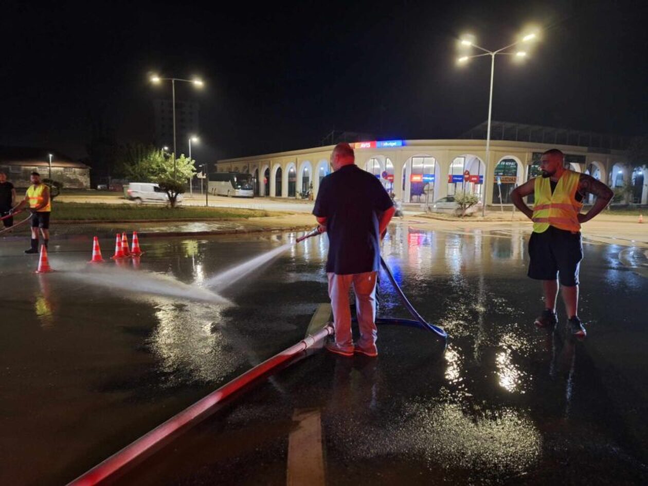Ο Αχιλλέας Μπέος βγήκε στους κεντρικούς δρόμους του Βόλου, τα μεσάνυχτα, προκειμένου να τους καθαρίσει από τους τόνους λάσπης, μετά την κακοκαιρία Elias, που ισοπέδωσε την πόλη.