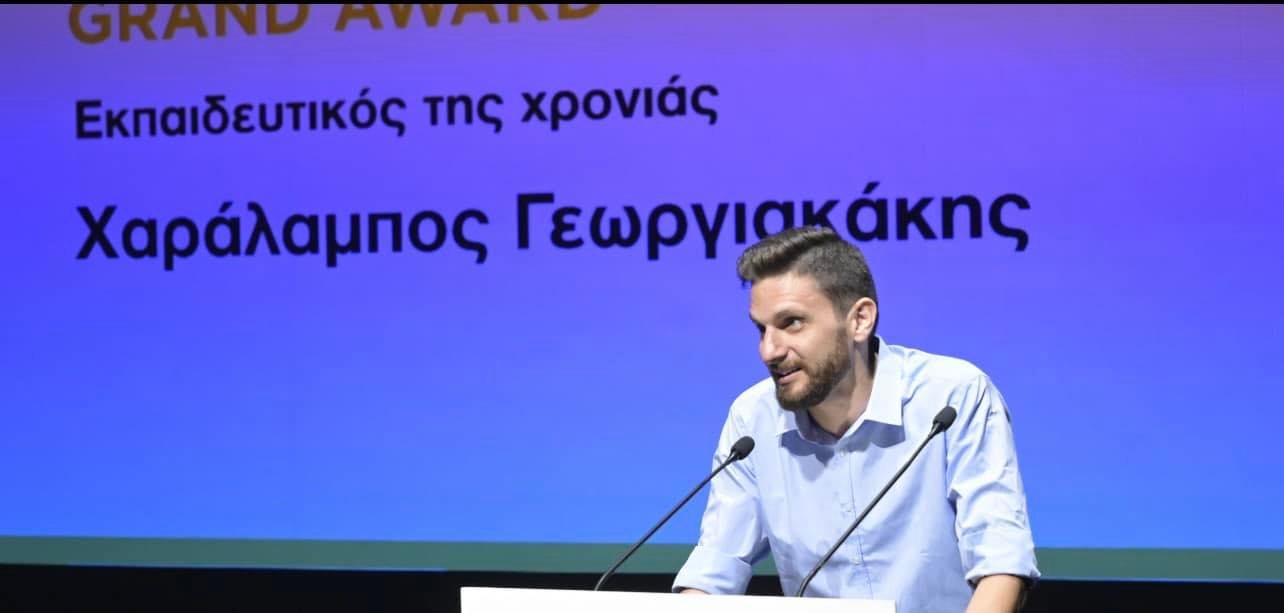 Καλύτερος δάσκαλος της χρονιάς βραβεύτηκε ο Χάρης Γεωργιακάκης, που υπηρετεί στο Δημοτικό Σχολείο Βοριζίων στο Ηράκλειο, στα Education Leaders Awards.