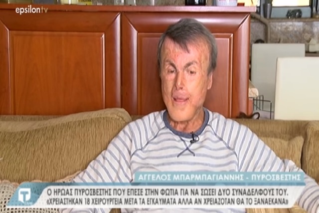 Ο Άγγελος βγήκε από τη πυρκαγιά με 60% εγκαύματα σε όλο του το σώμα. Η ζωή, όμως, συνεχίστηκε με 18 χειρουργεία για να μπορέσει να αποκαταστήσει τις σωματικές ζημιές.