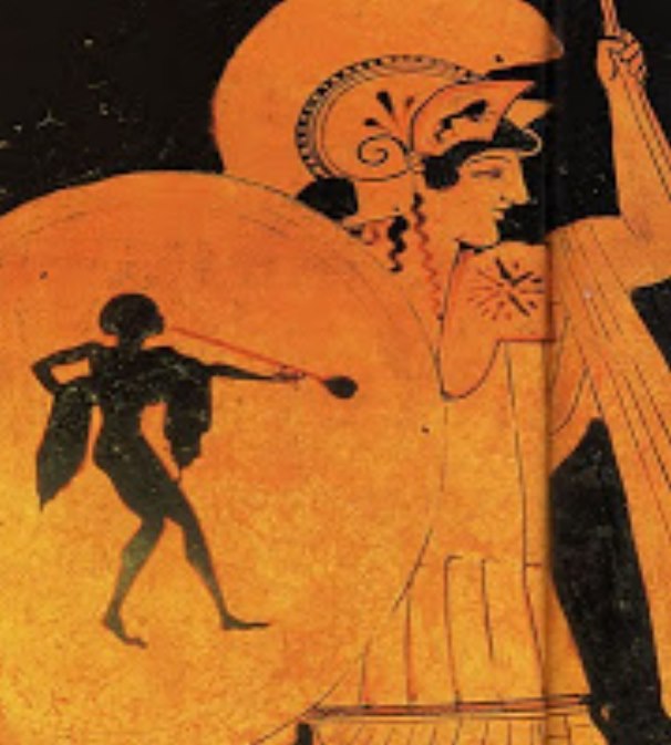 6ος αιώνας π.Χ.: Ο Αχιλλέας και ο Αίας ξεκουράζονται κατα την διάρκεια του Τρωικού πολέμου, με ένα παιχνίδι ζαριών. Στις ενδυμασίες τους υπάρχουν πολλά σύμβολα του Ηλίου με 8 ακτίνες.