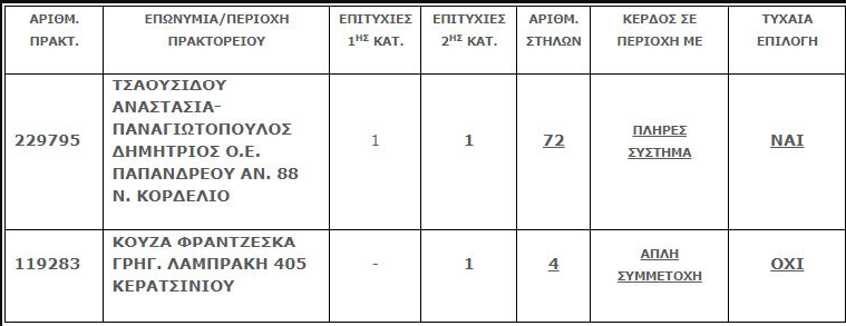 Κωδικός 23: Επιλεγμένοι Αριθμοί 10, Στήλες 51, Κόστος 25,50 ευρώ. Πιθανότητες: 20,24%
