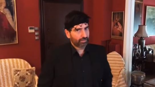 Μένουμε σπίτι: Στιγμιότυπο από το βίντεο του Ανδρέα Κωνσταντινίδη, ο οποίος υποδύεται τον Σπύρο Παπαδόπουλο