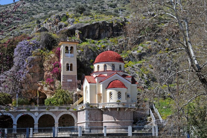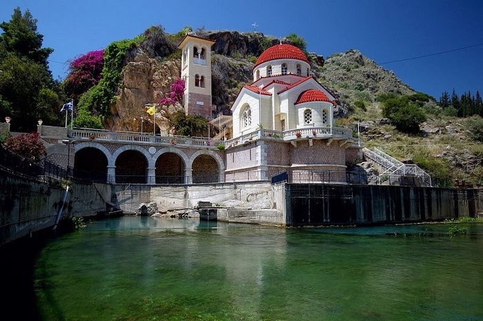 Το πρώτο είναι ότι βρίσκεται σε μια περιοχή που το πράσινο και τα νερά του ιστορικού ποταμού Ερασίνου την κάνουν μαγευτική. Το δεύτερο είναι ότι ο ναός είναι χτισμένος μέσα σε ένα σπήλαιο του όρους Χάον.