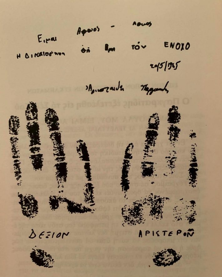 Κατέθεσε στο Δικαστήριο, είπε πέντε πράγματα και τον κόψανε, δεν ήθελαν την αλήθεια. Την καταδίκη ενός αθώου ήθελαν, να τελειώνουν με τον δράκο, να ηρεμήσει η πόλη και να γλιτώσει ο πραγματικός δράστης. Η απόφαση του δικαστηρίου ήταν ειλημμένη’, μου λέει θυμωμένος.