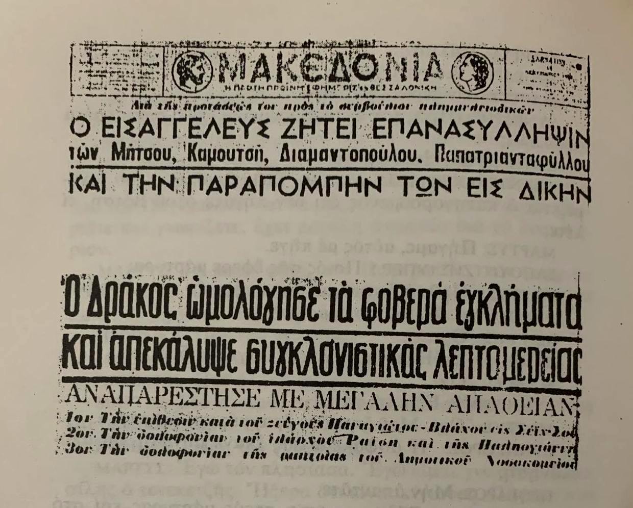 Ο Δράκος του Σέιχ Σου δεν ήταν ο Αριστείδης Παγκρατίδης, ο οποίος εκτελέστηκε άδικα , αλλά ένα πλουσιόπαιδο, προερχόμενο από οικογένεια Ακροδεξιών, το οποίο συγκάλυψε η Χωροφυλακή, κατόπιν ρητής εντολής που έλαβε.