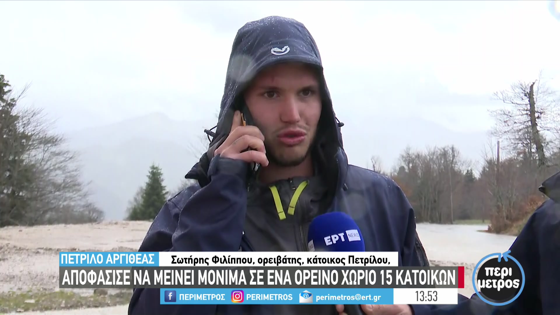Ένας 26χρονος ορειβάτης, ο Σωτήρης Φιλίππου, εδώ και μερικούς μήνες, έχει επιλέξει να μένει στο Πετρίλο Αργιθέας της Καρδίτσας, προκειμένου να διοργανώσει αγώνες ορεινού τρεξίματος και να συντηρήσει τα ορεινά μονοπάτια της περιοχής.