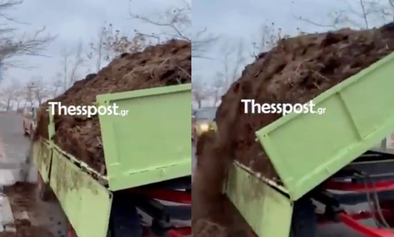 Όπως φαίνεται στο βίντεο του thesspost.gr, έριξαν ένα «φορτηγό» βάρους τεσσάρων τόνων κοπριάς φυτικών υπολειμμάτων και σκουπιδιών μπροστά από το κτίριο της Περιφέρειας, ως ένδειξη διαμαρτυρίας.
