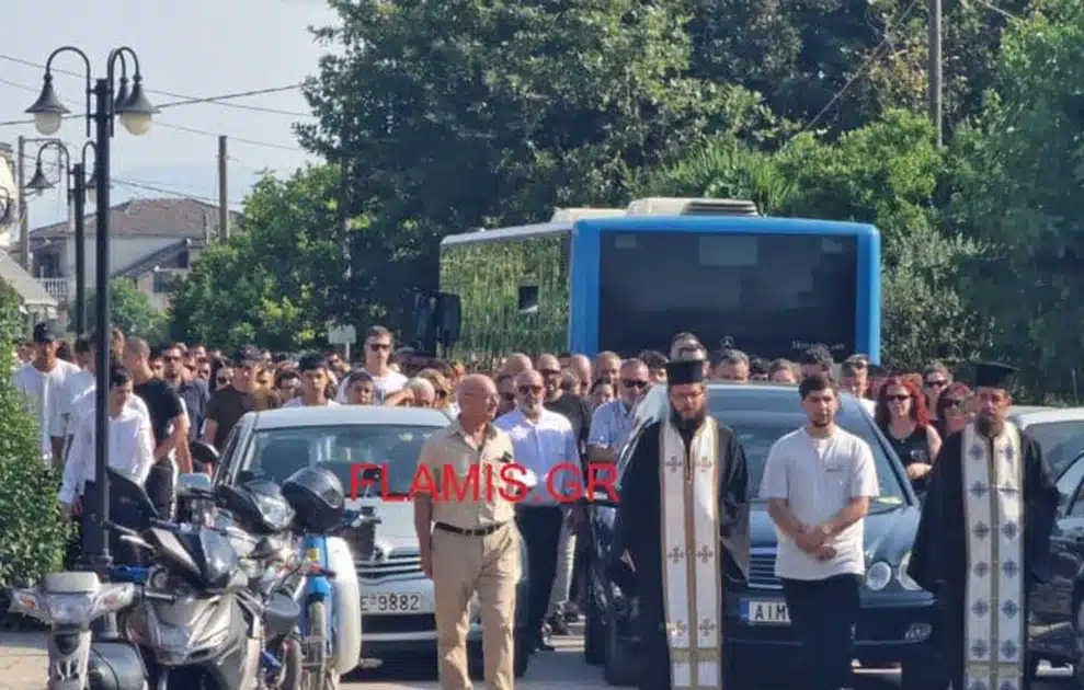 Όπως αναφέρει το flamis.gr, ο τραγικός πατέρας ακουμπούσε με τα δυο του χέρια το αυτοκίνητο που μετέφερε το φέρετρο και φώναζε: «Είσαι άνδρας. Ψηλά το κεφάλι». Η μητέρα του κατέρρευσε και ο διευθυντής της ΜΕΘ Παίδων Ανδρέας Ηλιάδης, ο οποίος ανέλαβε τα δύο παιδιά όταν μεταφέρθηκαν στην Πάτρα, πήγε κοντά της και την αγκάλιασε.