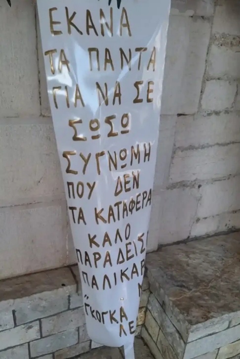 Δεκάδες ήταν και τα στεφάνια με συγκινητικά μηνύματα έξω από την εκκλησία, μεταξύ των οποίων αυτό του Γκόγκα Λεβιάν, που βούτηξε στον Άραχθο για να σώσει τα παιδιά. «Έκανα τα πάντα για να σε σώσω. Συγγνώμη που δεν τα κατάφερα παλικάρι μου», γράφει το στεφάνι του κ. Λεβιάν, σύμφωνα με το pelop.gr.