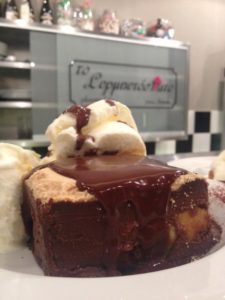 Υπάρχει ένα πολύ δροσερό σορμπέ φράουλα για τη φραουλόπιτα και μια σοκολάτα πραλίνα, που την εισήγαγε πειραματικά.