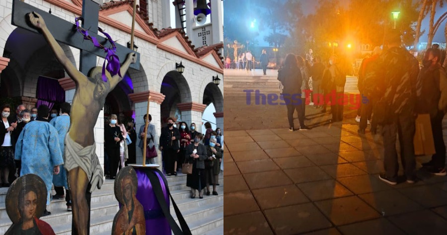 Η Ακολουθία των Μεγάλων Ωρών και η Αποκαθήλωση του Εσταυρωμένου έγιναν με ανοιχτές πόρτες στις εκκλησίες, με αποτέλεσμα οι πιστοί να συρρέουν από αργά το απόγευμα έξω από τις εκκλησίες, σαν να μην βρισκόμαστε εν μέσω πανδημίας.