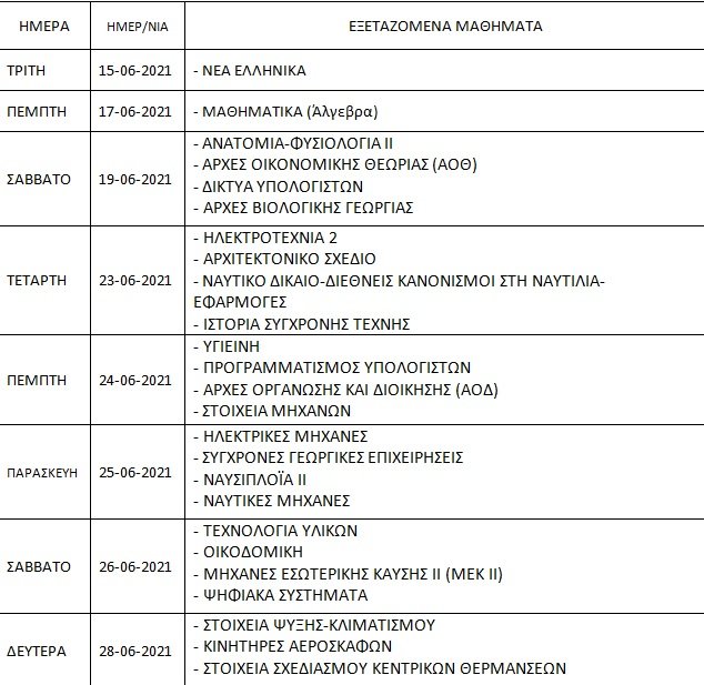 Ως ώρα έναρξης εξέτασης ορίζεται η 08:30 π.μ. Οι υποψήφιοι πρέπει να προσέρχονται στις αίθουσες εξέτασης μέχρι τις 08.00 π.μ.