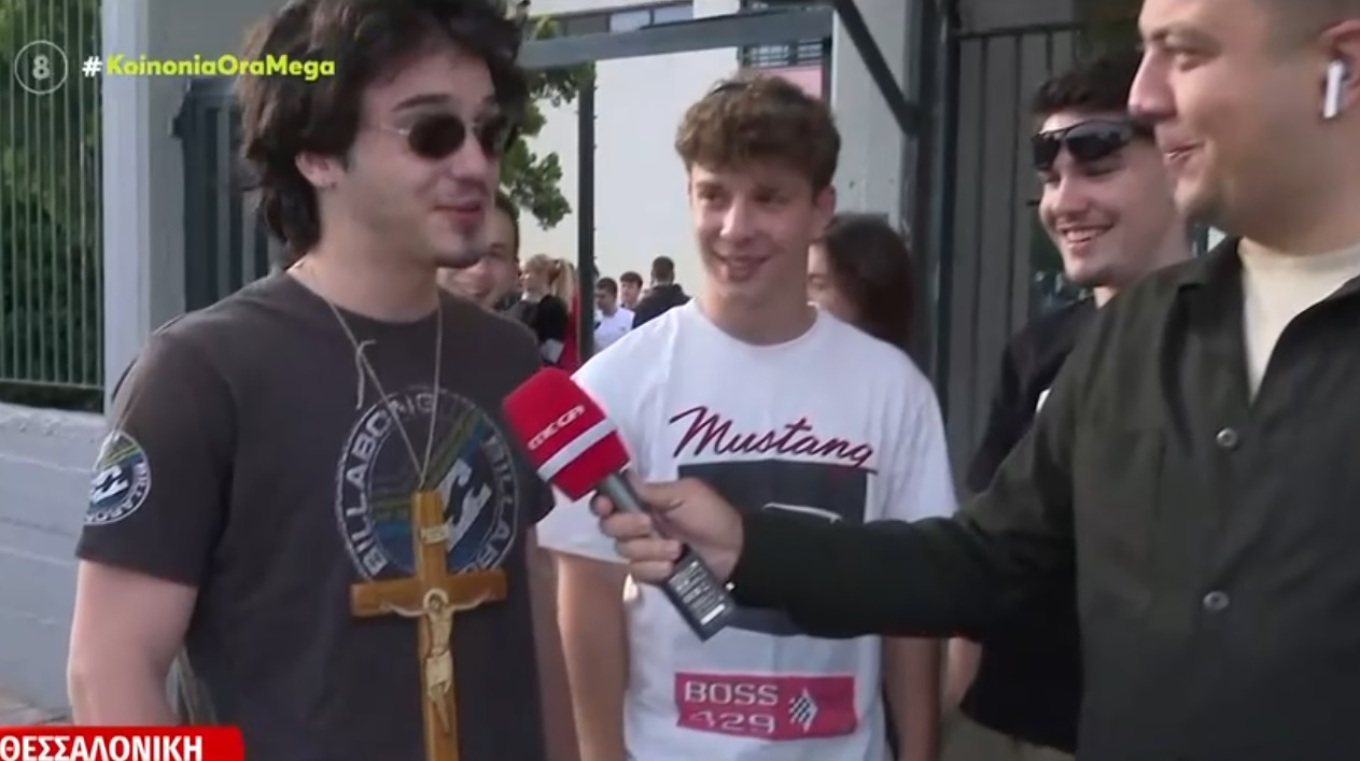 Τον μαθητή εντόπισε έξω από το 1ο Λύκειο Πυλαίας το MEGA με τον Παναγιώτη, όπως είναι το όνομά του, να εξηγεί ότι «διάβαζα όλη τη χρονιά. Δεν μπορείς να βασιστείς ούτε στο ένα ούτε στο άλλο, χρειάζεται και η βοήθεια του Θεού»