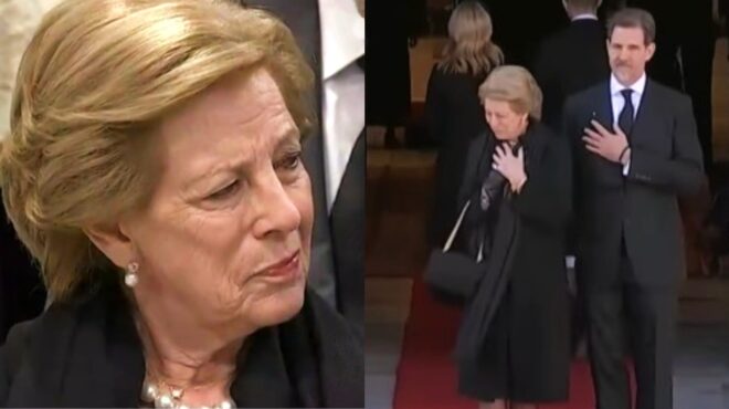 Κατά την προσέλευσή της, η Άννα – Μαρία καταχειροκροτήθηκε και μάλιστα παρατεταμένα από τις χιλιάδες κόσμου -κατ’ εκτίμηση 10.000 άτομα- που βρίσκονται έξω από τη Μητρόπολη για την κηδεία του τέως βασιλιά Κωνσταντίνου.