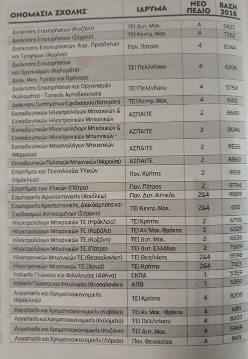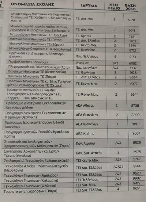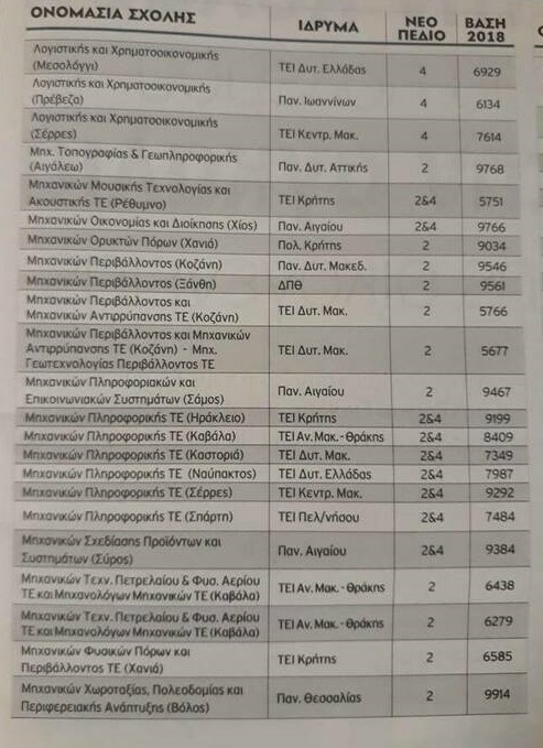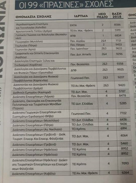 Ακολουθούν αναλυτικά όλες οι «πράσινες» σχολές της Τριτοβάθμιας εκπαίδευσης: